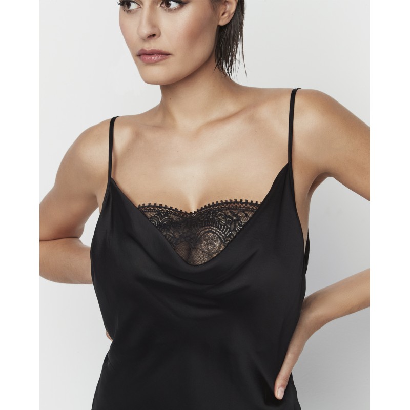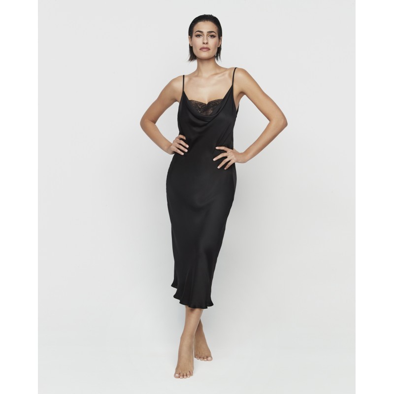 Camisón lencero largo con tirantes ajustables. Inspirada en las veladas inolvidables, esta prenda combina elegancia y sensualidad en cada detalle. Su estilo audaz y refinado reflejan el glamour y la excelencia en una sola pieza. Este camisón pertenece a la colección Aurum, creada en colaboración con Pilar Rubio para conmemorar nuestro 50 aniversario.