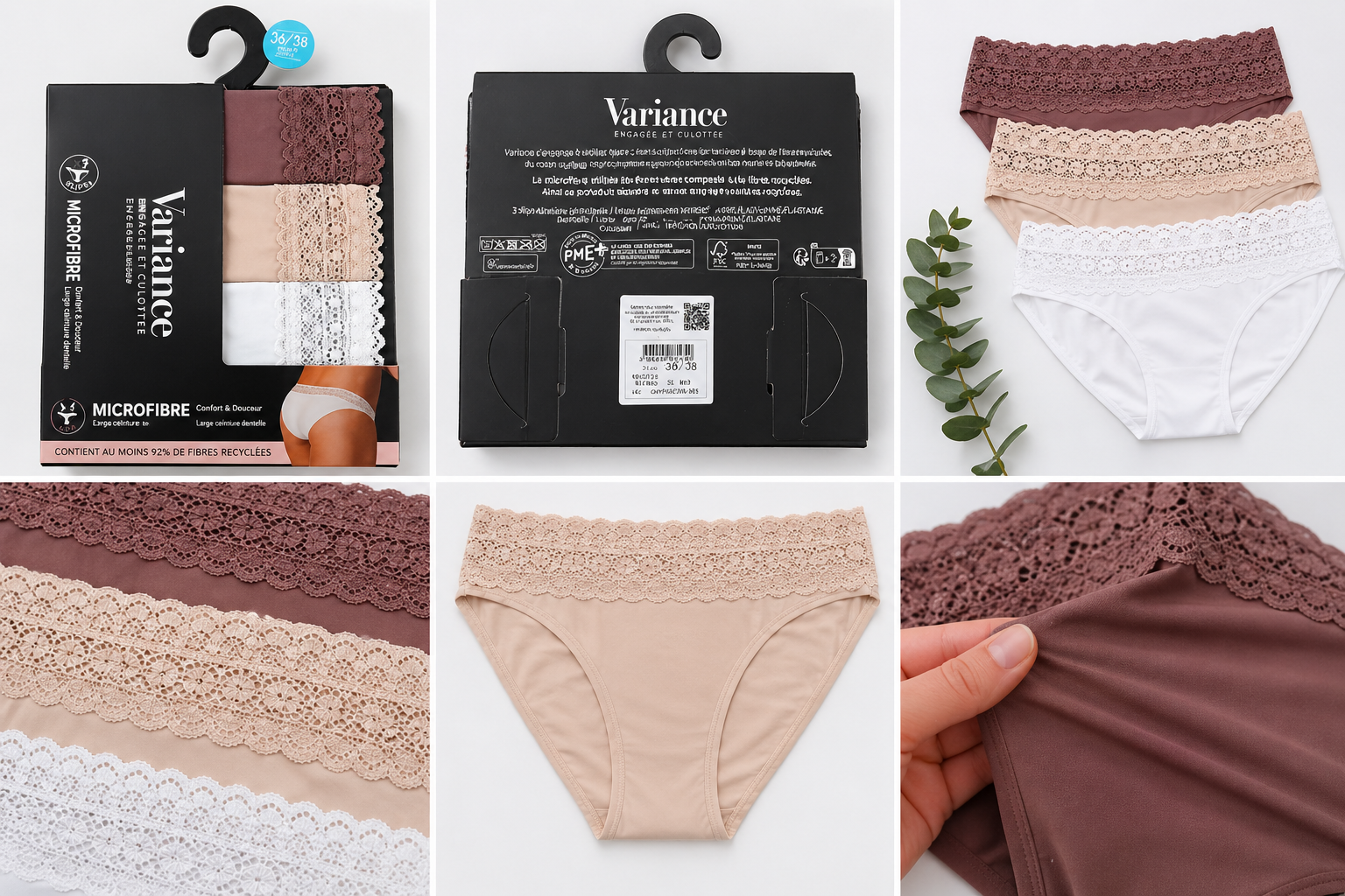 Pack 3 braguitas Variance microfibra Reciclada con encaje – VARIANCE