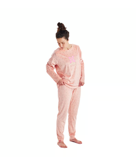Confeccionado en suave terciopelo, este pijama es ideal para las noches frescas y ofrece una sensación de calidez y confort excepcionales.