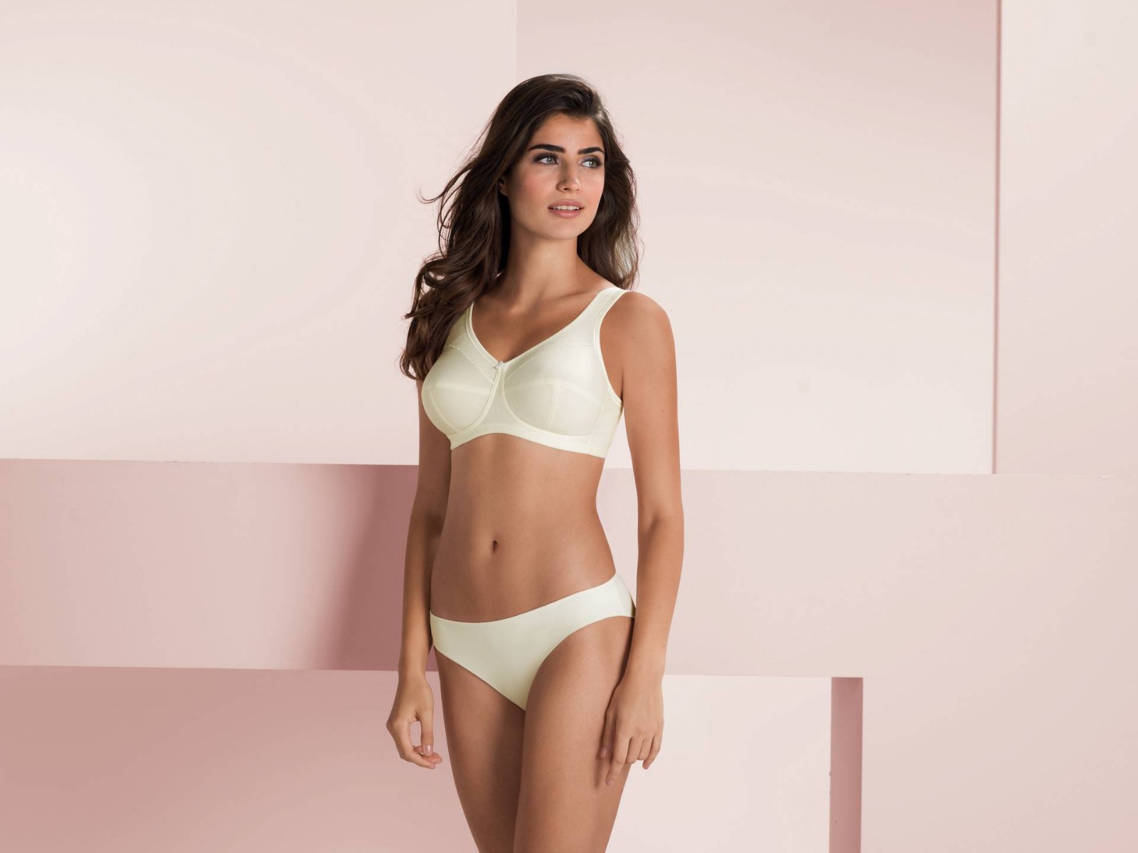 Sujetador sin aros 80% de ALGODON, con las copas divididas en tres, proporciona una forma muy natural al pecho. Los anchos tirantes con suave acolchado incrementan la sensación de alivio.