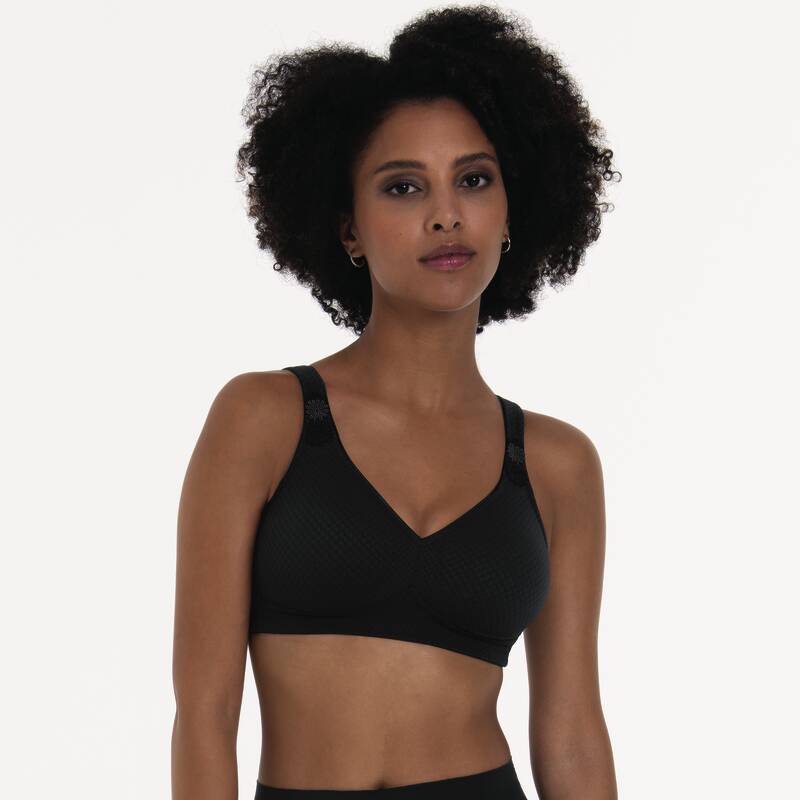 El sujetador sin aros LENI es sinónimo de máximo confort. Leni presenta numerosas características que le harán sentir bien; por ejemplo, las copas sin costuras de doble capa en género de jacquard, que garantizan un tacto especialmente suave. Las copas interiores están hechas de un tejido liso y elástico y aumentan la sensación de confort. Especialmente en las tallas más grandes, Leni ofrece aún más comodidad gracias a un soporte de pecho invisible.