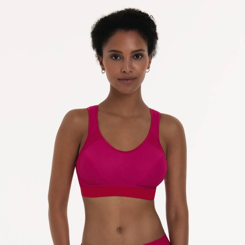 Sujetador sin aros deportivo para prótesis con corte funcional de la espalda y su tejido en red, hacen de ella una zona altamente transpirable. Sujetador sin aros deportivo para prótesis con los tirantes acolchados y ergonómicamente preformados, que garantizan confort al porte y evitan que se deslicen del hombro. Sujetador sin aros con FUNDAS EN AMBAS COPAS. Sujetador especial para mastectomias