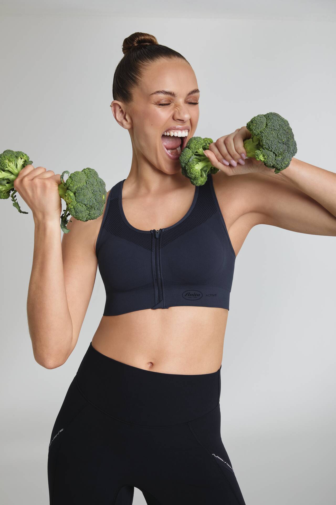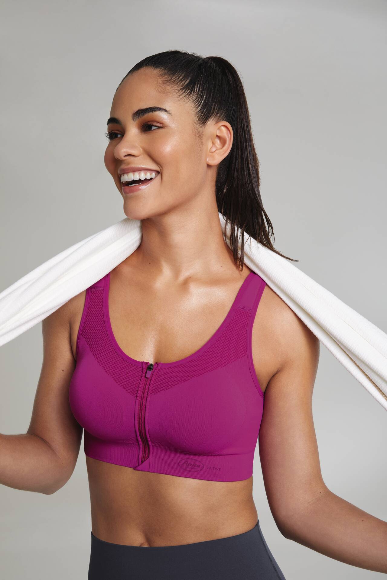 El nuevo sujetador deportivo Anita se abre con cremallera frontal.